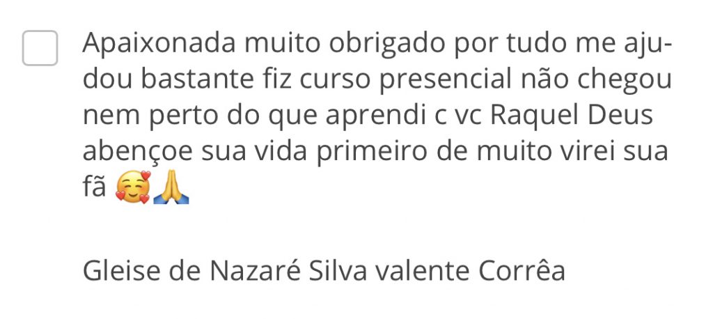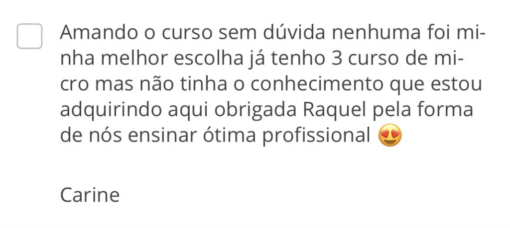 Quer ver mais depoimentos de alunas e procedimentos realizados por elas? CLIQUE AQUI e acesse meu INSTAGRAM, já são mais de 70.000 alunas formadas em meus cursos ONLINE.