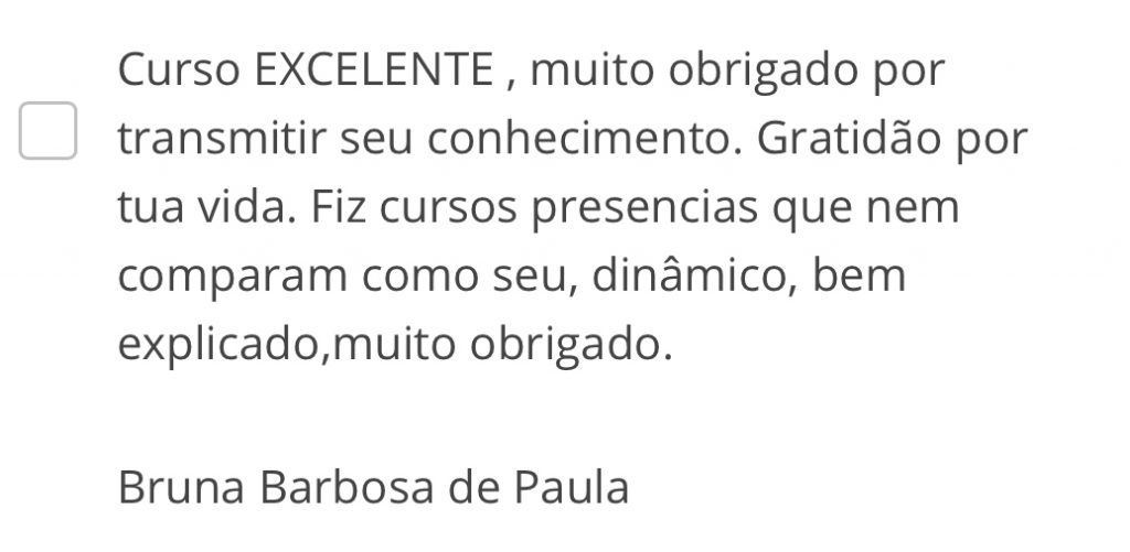 Qual a maior vantagem? Você poder assistir as suas aulas quantas vezes você quiser, afinal você tem acesso para sempre a todo o conteúdo do curso inclusive as futuras atualizações, além disso, você tem um suporte VIP pelo WHATSAPP diretamente comigo RAQUEL BARROS enviando os seus treinos para correção e tirando todas as suas dúvidas.